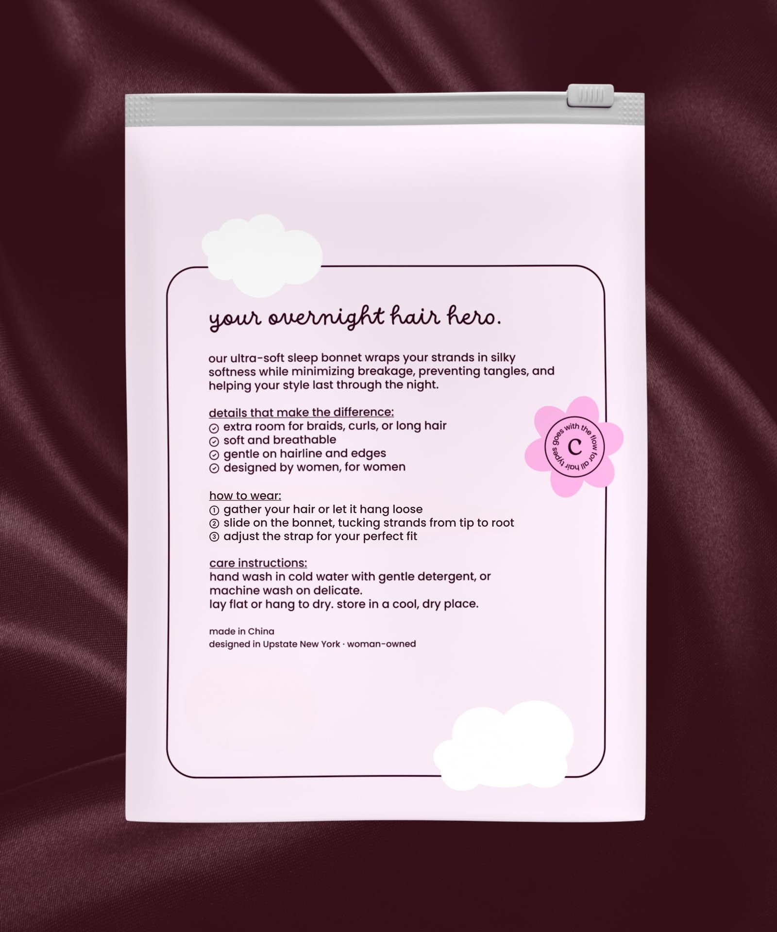 ADJUSTABLE & SLIP-RESISTANT – Features a super soft, wide & non-elastic band that’ll help the bonnet stay comfortably around your head all night long. No slipping, no waking up without it. Its discreet adjustable strap custom-fits any head size (kids, too).