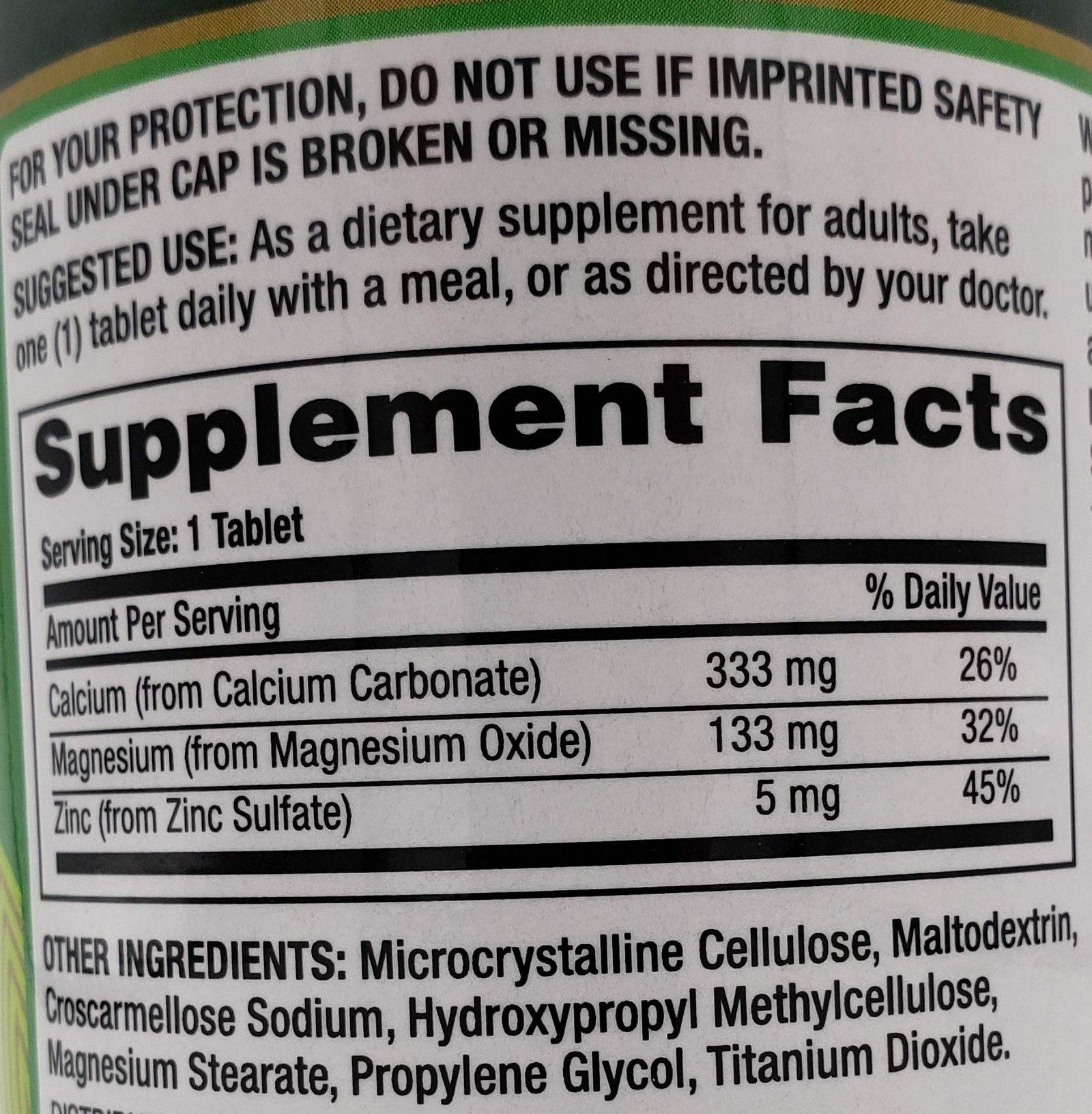 Finest Nutrition Calcium 333 mg Magnesium & Zinc Dietary Supplement Tablets 250 Each