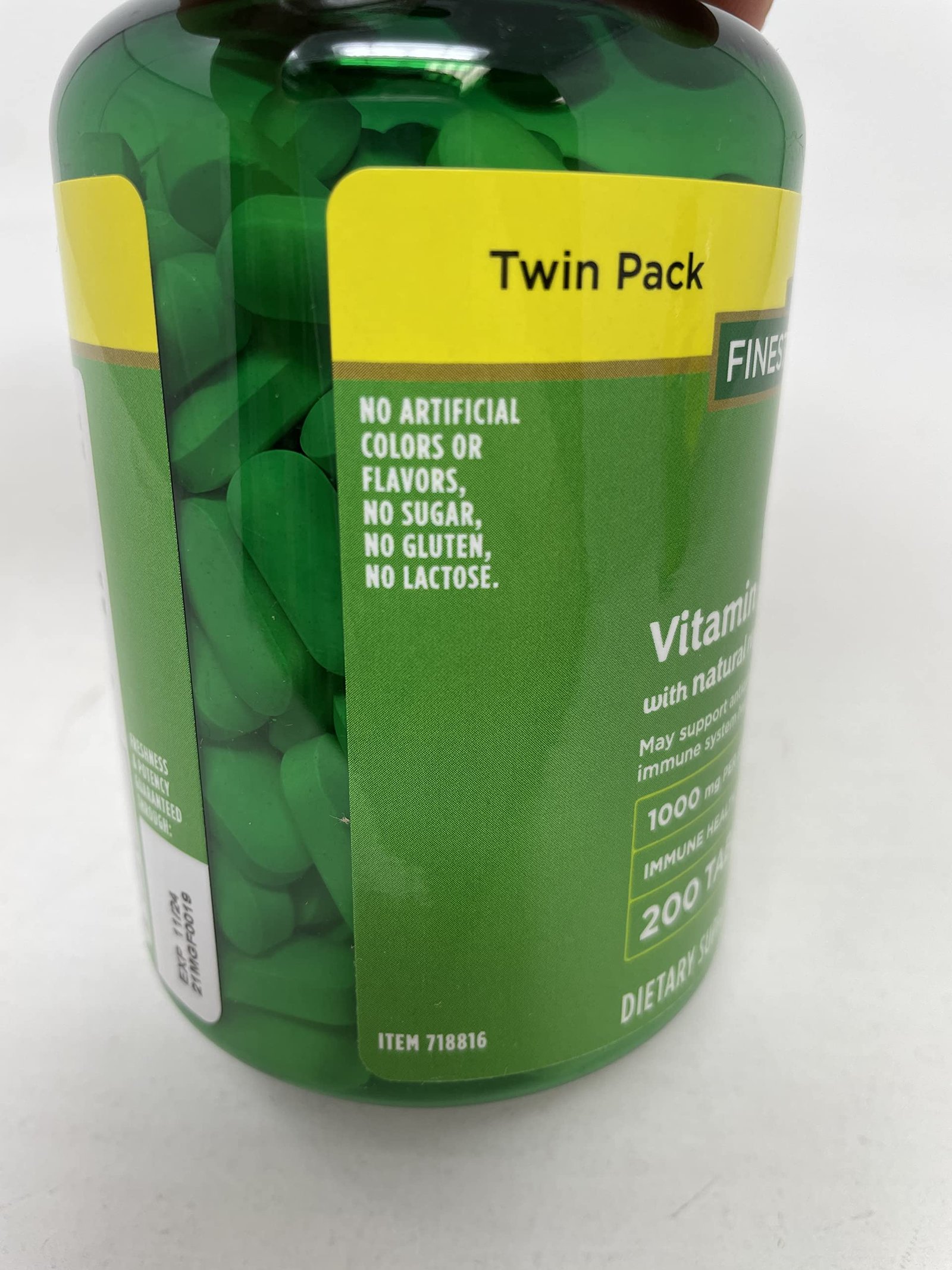 Finest Nutrition Immune System Health Vitamin C with Rose Hips – Pack of 2 Bottles – 200 Tablets Per Bottle – 400 Tablets Total – 1000 mg Per Serving