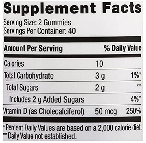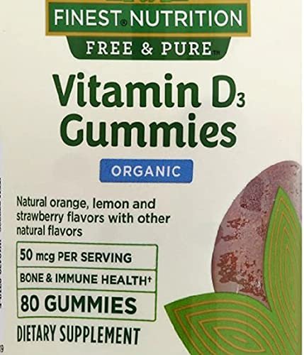 Finest Nutrition Organic Vitamin D3 2000I IU Gummy Natural Orange, Lemon, Strawbery Flavors 80 Count
