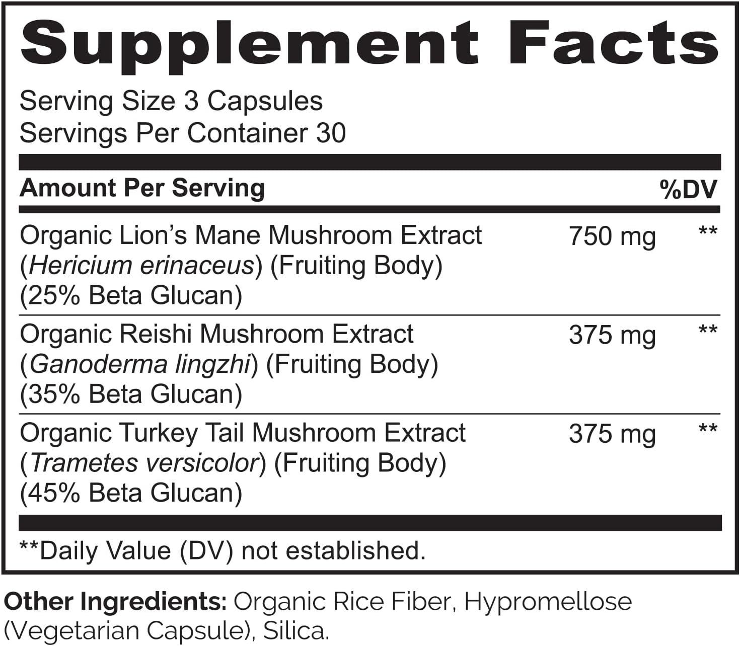 - TOP RESEARCHED MUSHROOMS: Our targeted mushroom blend features three of the most well-researched functional mushrooms – lion’s mane, reishi and turkey tail – combined in meaningful amounts to help support your everyday immune + brain health.*