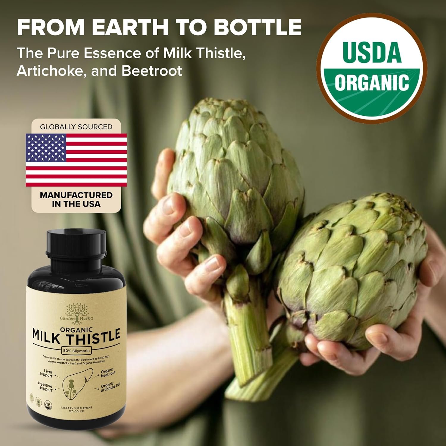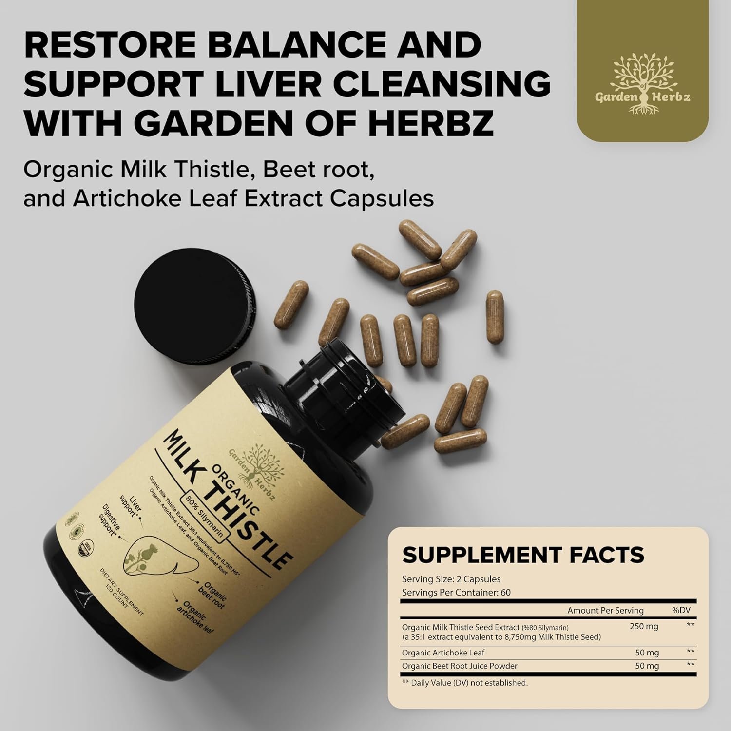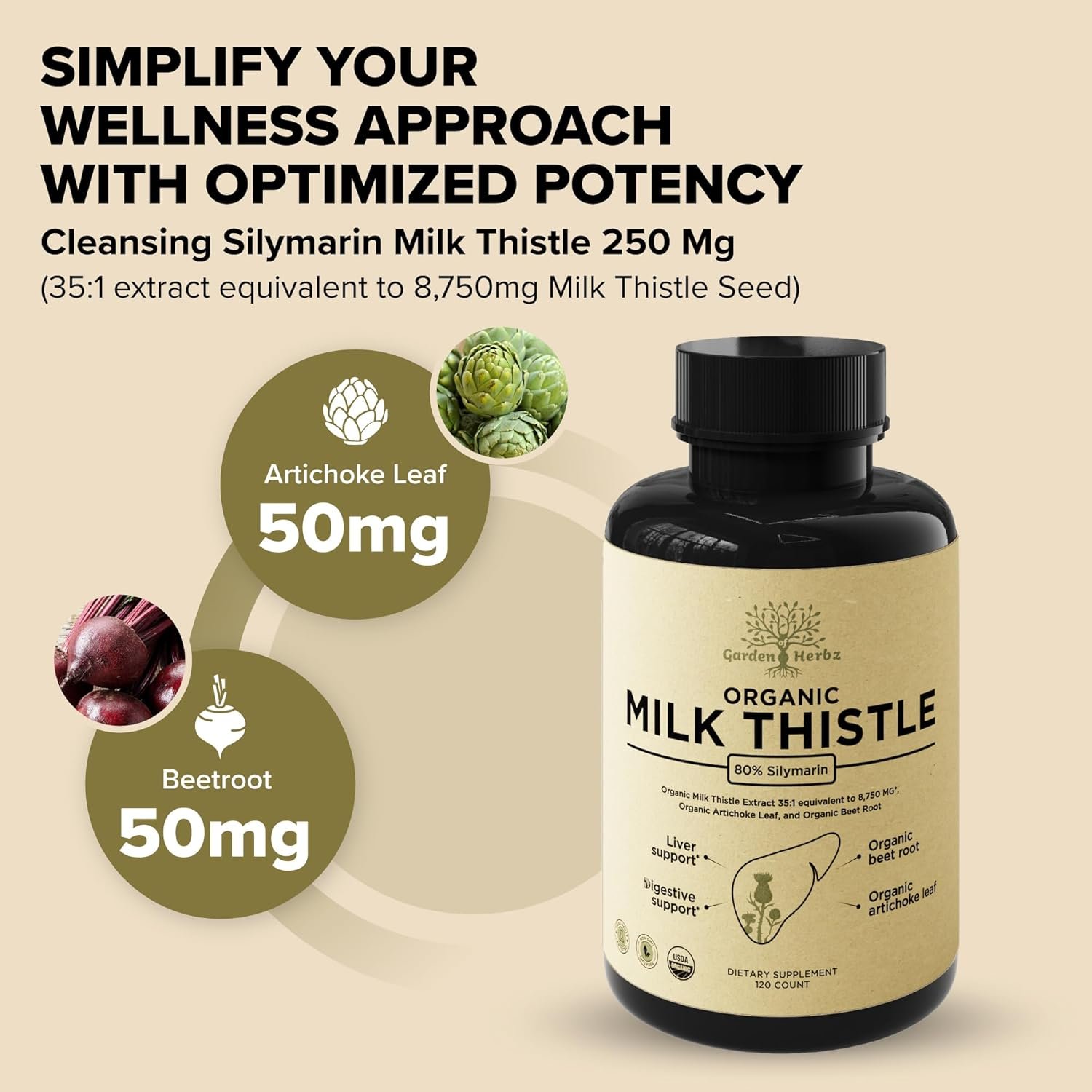 Organic Milk Thistle Supplement 80% Silymarin – 250 mg with Beet Root & Artichoke Leaf Extract – Herbal Formula for Liver