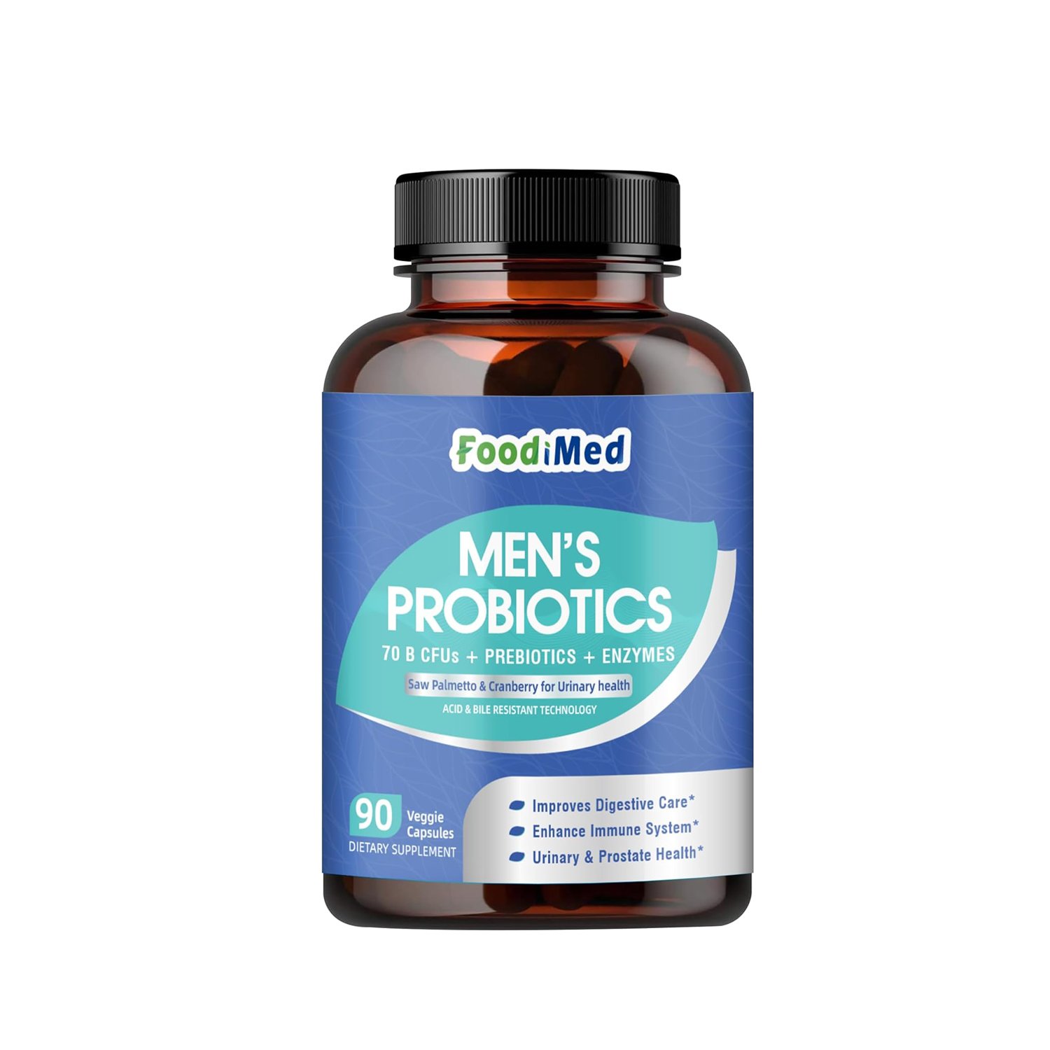 - Complete Probiotics for Men- Powerful supplement with 70 Billion CFU probiotics from 10 strains, prebiotics, enzymes, men’s prostate care blend to support men’s wellness. FoodiMed probiotics offer 90 capsules in a shelf-stable bottle for 45-day supply.
