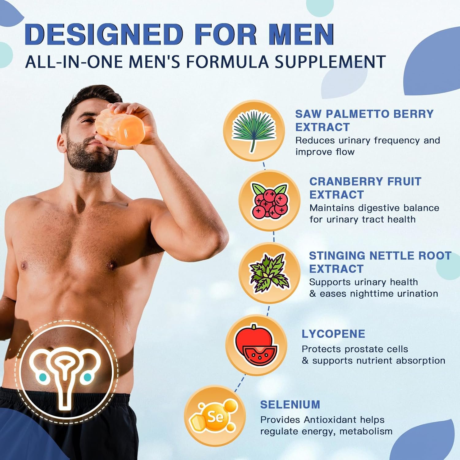 - Men’s Prostate & Urinary Tract Support – Designed for men, saw palmetto supports urinary & prostate function, cranberry promotes microbiome balance, while stinging nettle & lycopene aid metabolism & nutrient absorption, powerful blend for mens daily care.