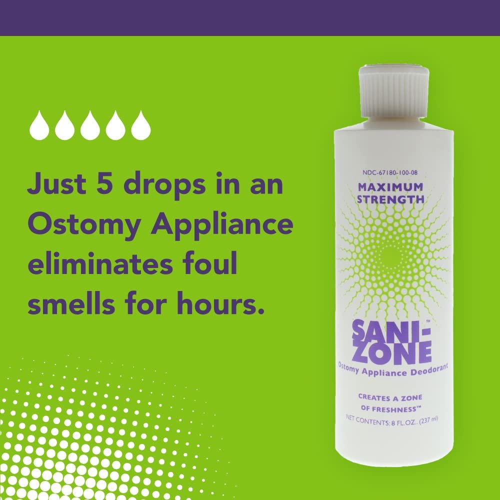 Sani-Zone Maximum Strength Ostomy Appliance Deodorant Bottle Unscented, 8 oz. Wound Deodorizer, Ostomy Care for Hospital and Professional Use