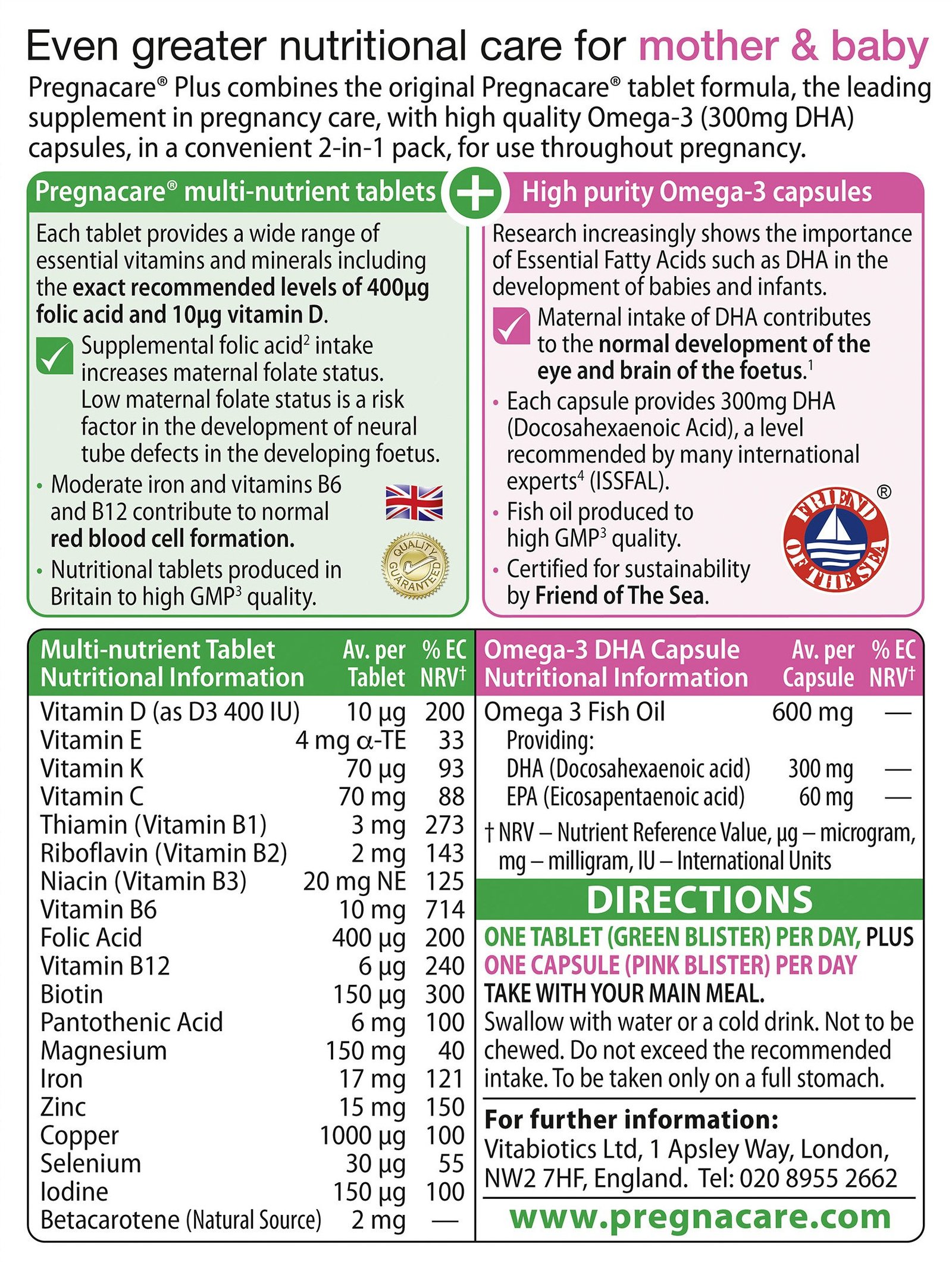 Vitabiotics Pregnacare Multivitamin Plus Omega-3 – 60 Tablets by Pregnacare